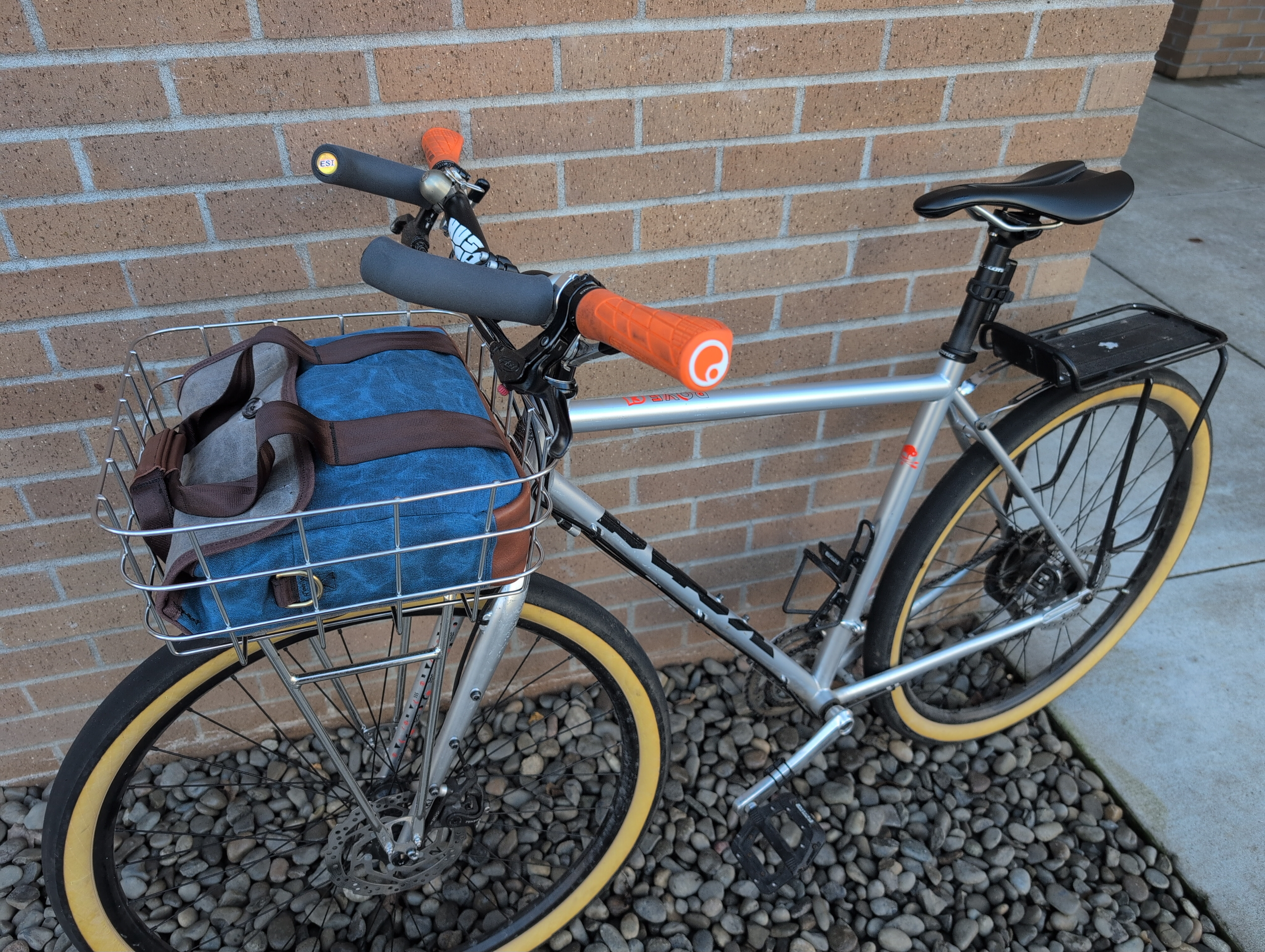 Basket is a Pelago Rasket. Slow Computer fits other bike baskets and milk crates as well, though it stands upright in smaller ones.